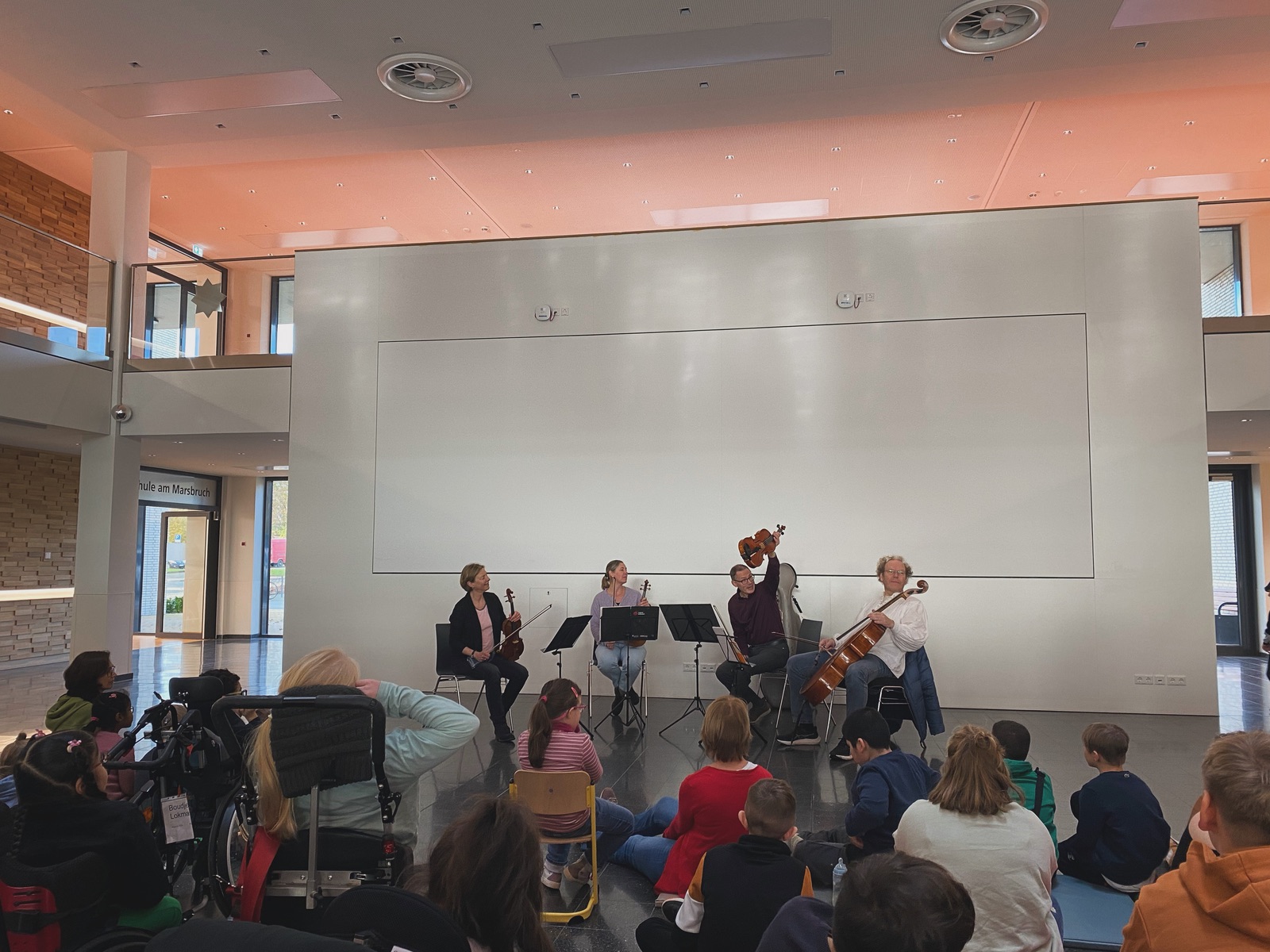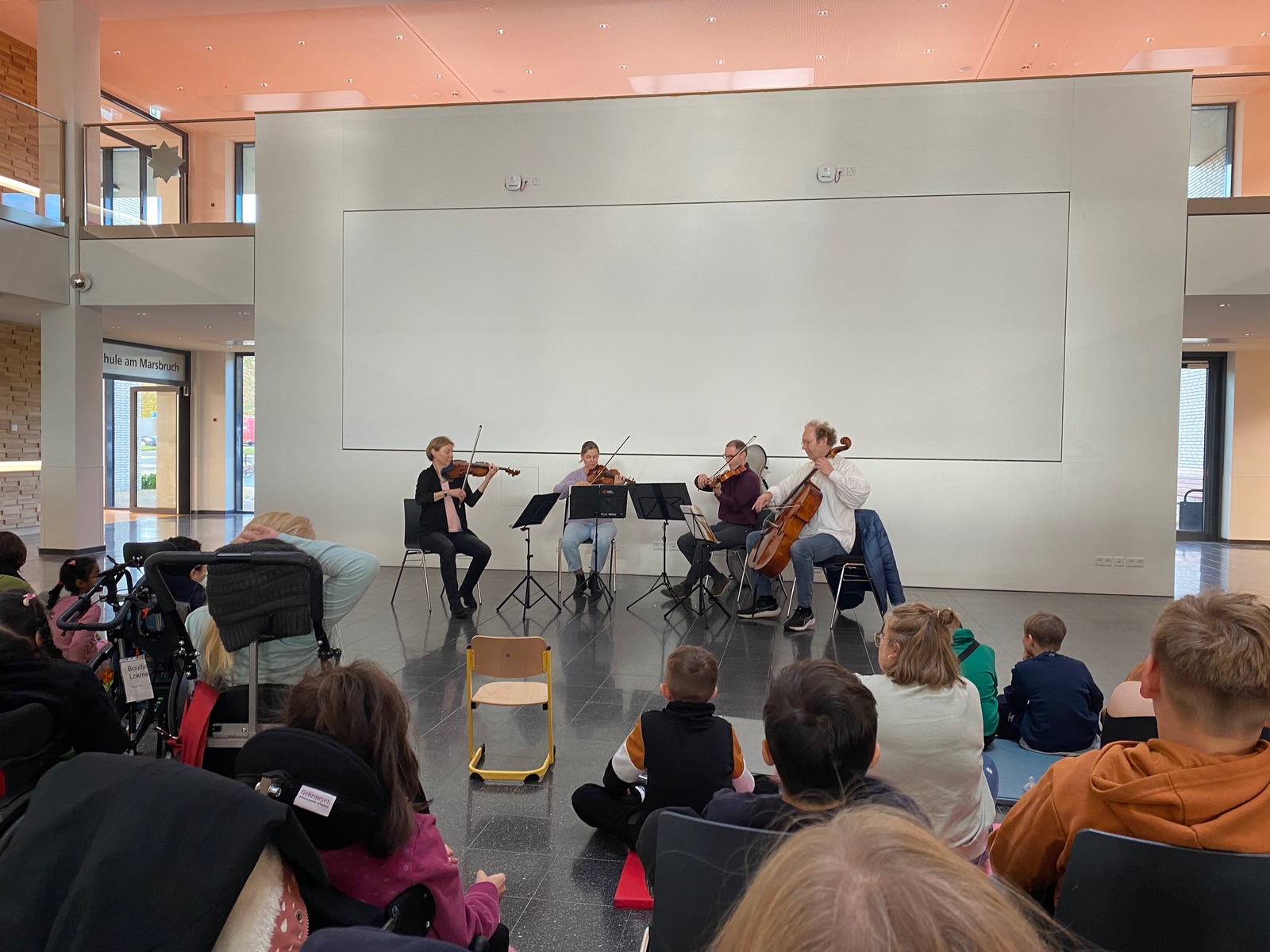 18. November 2024 um 10:48 #1 Aufregend! Heute war Hauke Hack wieder da. Er hat zwei Kolleginnen und einen Kollegen von den Philharmonikern Dortmund mitgebracht. Sie haben uns mit ihren Streichinstrumenten ein kleines Konzert gespielt. Vielen Dank! Es war so schön.