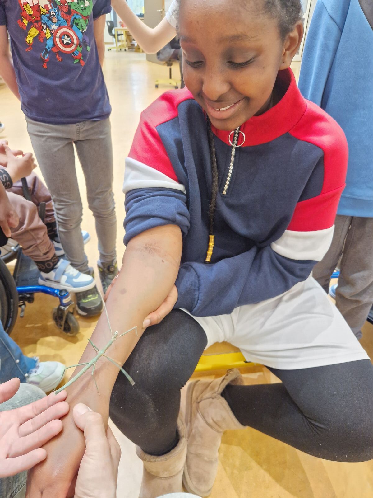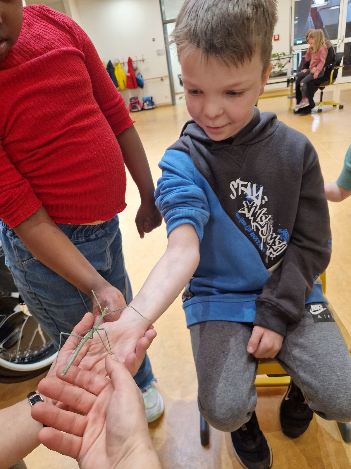 Wir haben uns sogar getraut die Stabschrecken auf dem Arm krabbeln zu lassen. Die Stabschrecken sind ganz zart und lieb!