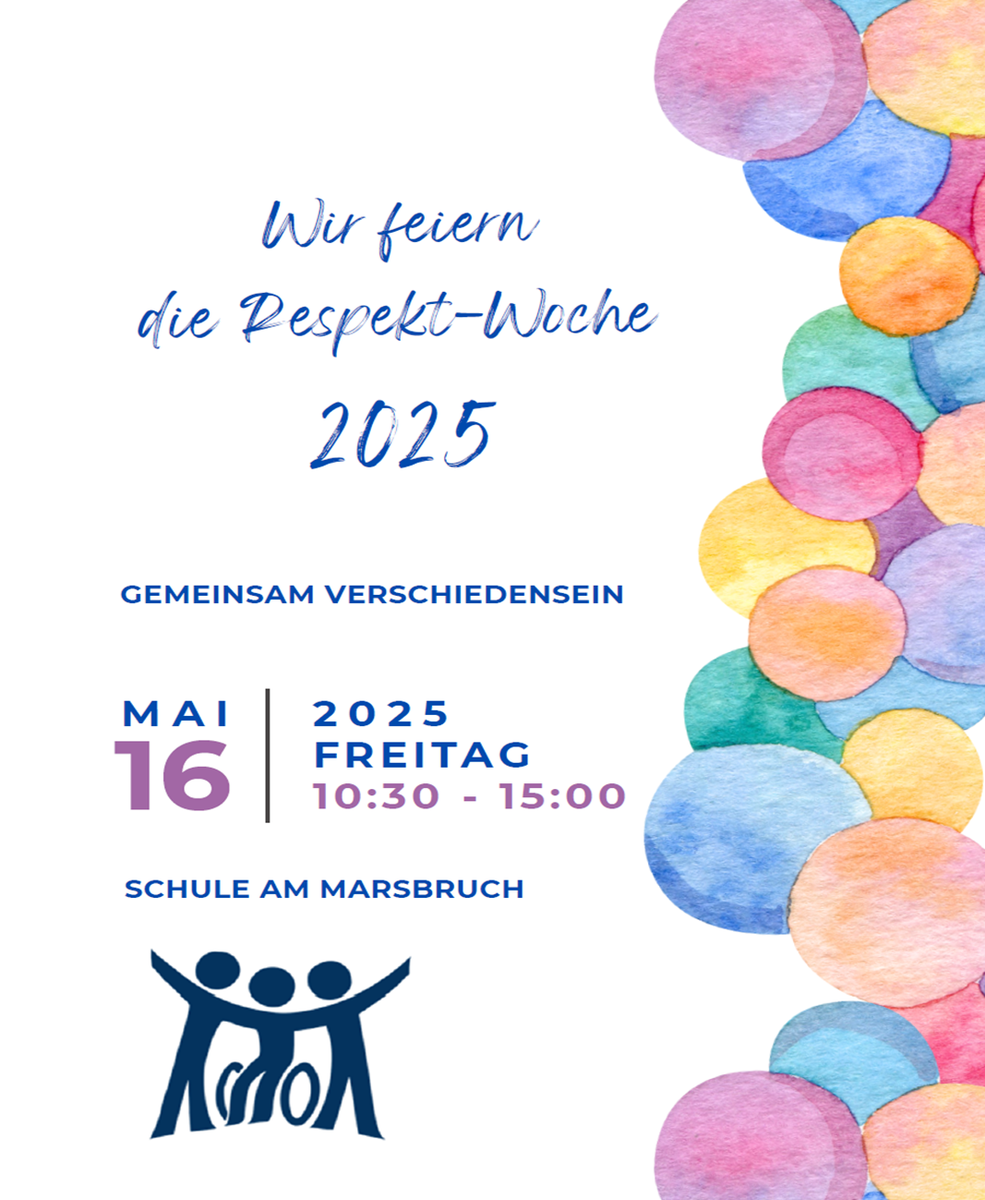 in der Woche vom 12. bis 16. Mai findet an unserer Schule die 'Respektwoche 2025' mit dem Thema 'Gemeinsam Verschiedensein' als Projektwoche statt. Zum Abschluss dieser Projektwoche laden wir alle zu einem