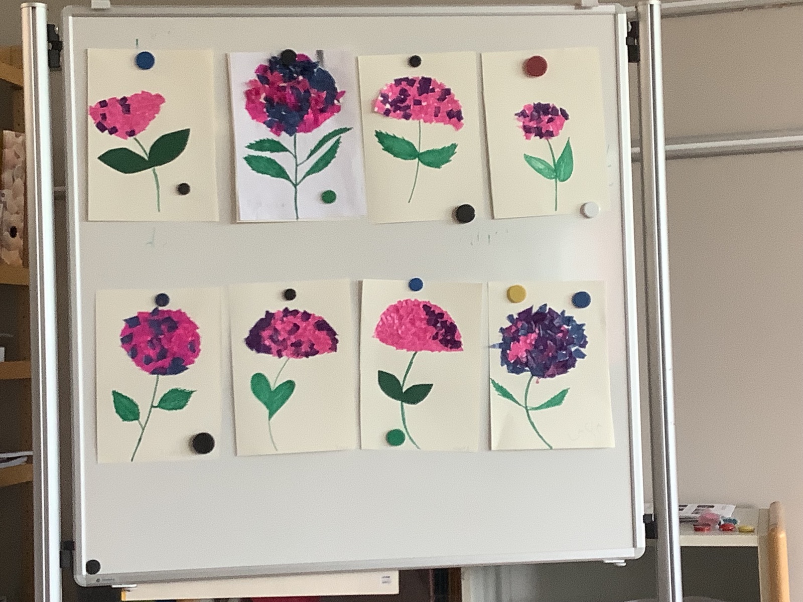 9. Juli 2025 um 11:10 #1 Hallo!Schaut, mal was draußen blüht.Das sind Hortensien.Wir haben heute welche geklebt.Bestimmt entdeckt ihr sie auch draußen in den Gärten.Schöne Ferien euch allen!