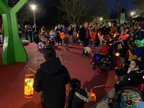 Dort startete der Martinsumzug mit vielen Eltern und Freunden. Alle hatten wunderschöne Laternen.