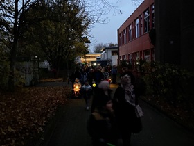 In der Unterstufe machten sich alle nach einem leckeren Sankt Martins Schmaus um halb fünf auf den Weg zum Schulhof.