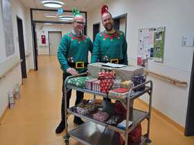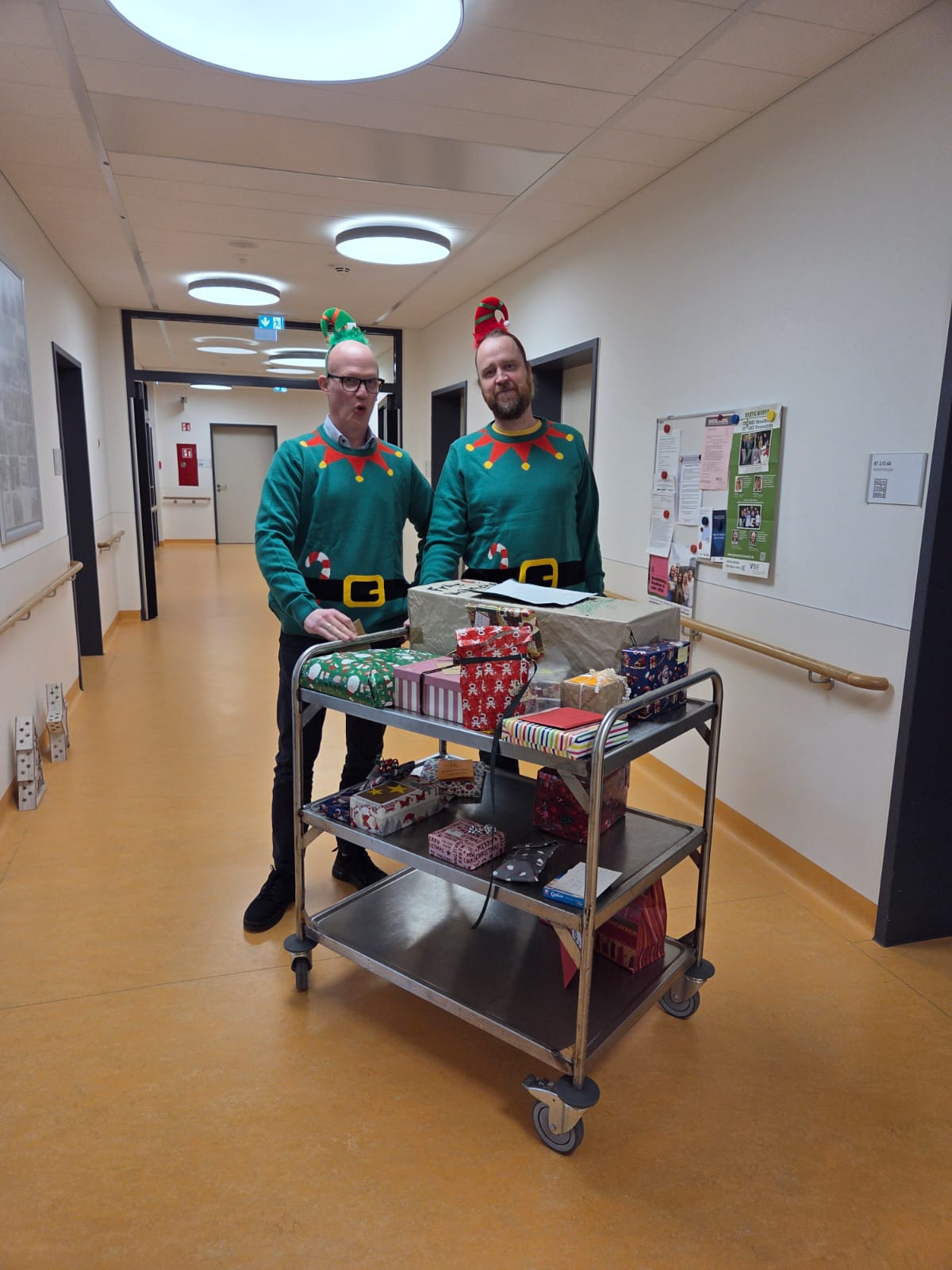 18. Dezember 2025 um 17:04 Offizieller Beitrag #1 Was war denn da los. Heute Nachmittag sind zwei Weihnachtswichtel durch die Schule gezogen und haben jeder Klasse ein Geschenk gebracht. Vielen Dank den Mitarbeitenden des Jobcenters Dortmund, die Wünsche erfüllt haben!